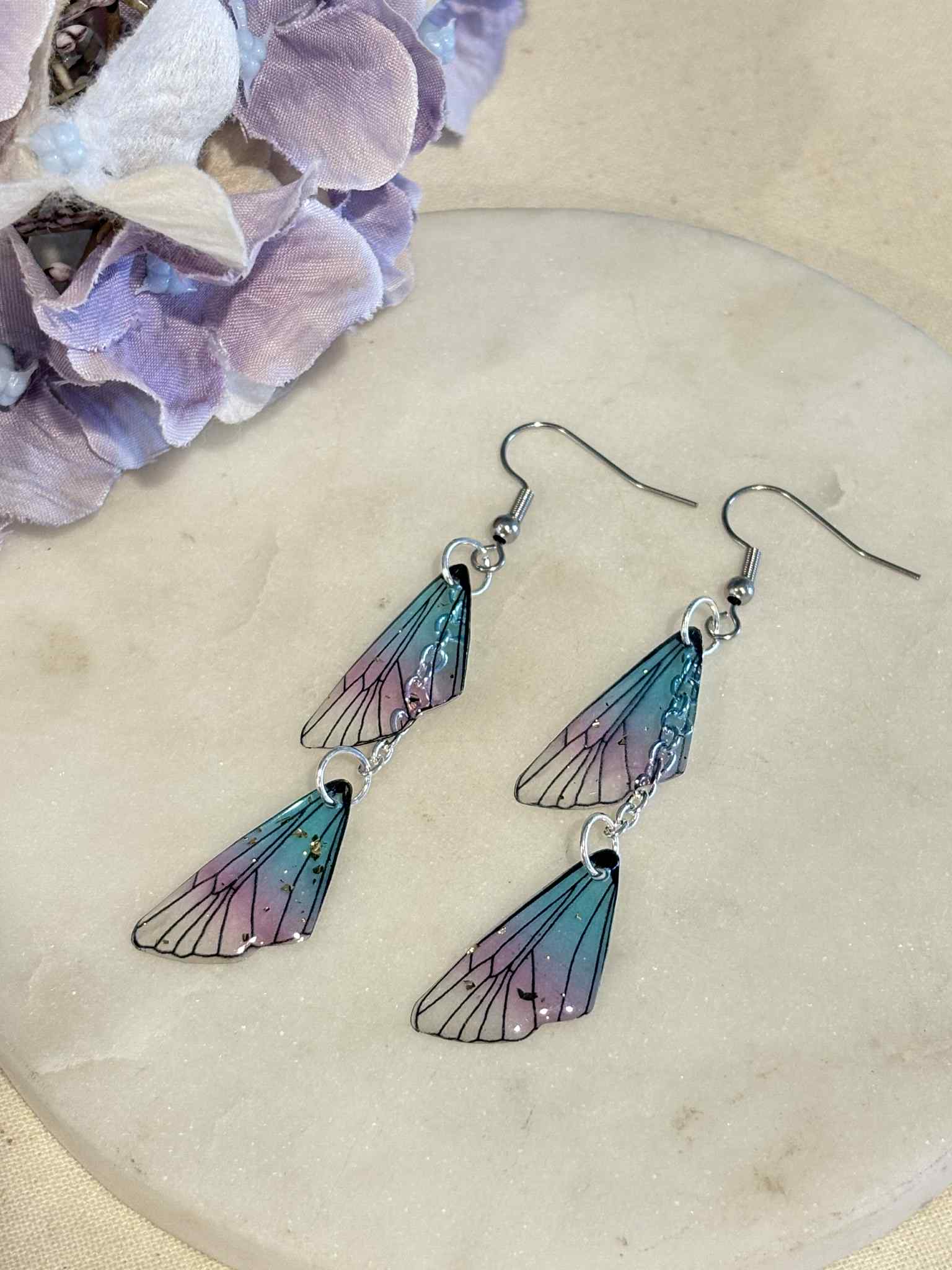 Butterfly wing - chain on hook earrings
