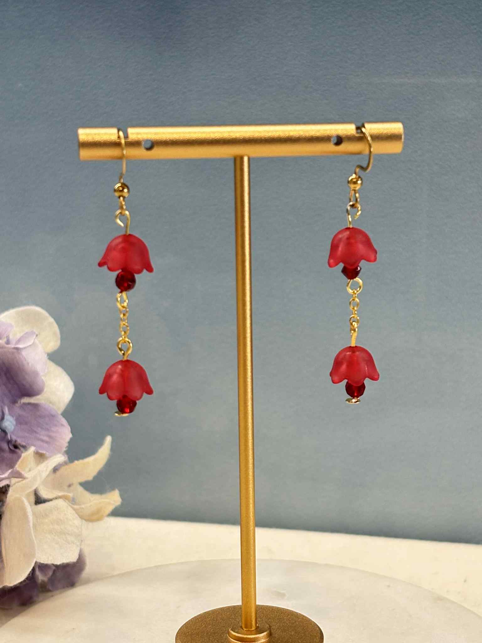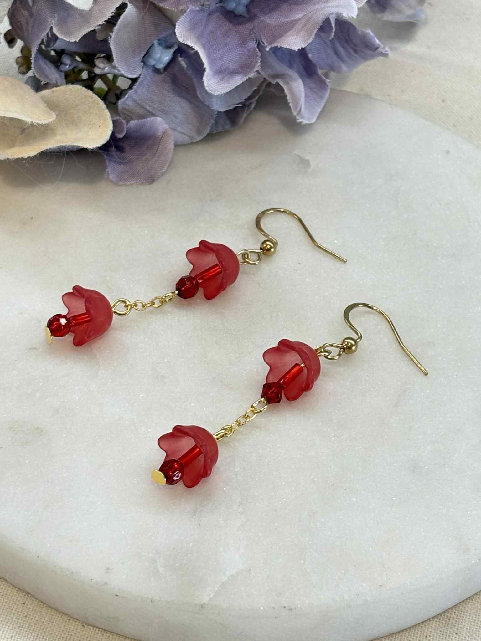 Red flower lamp hook earrings