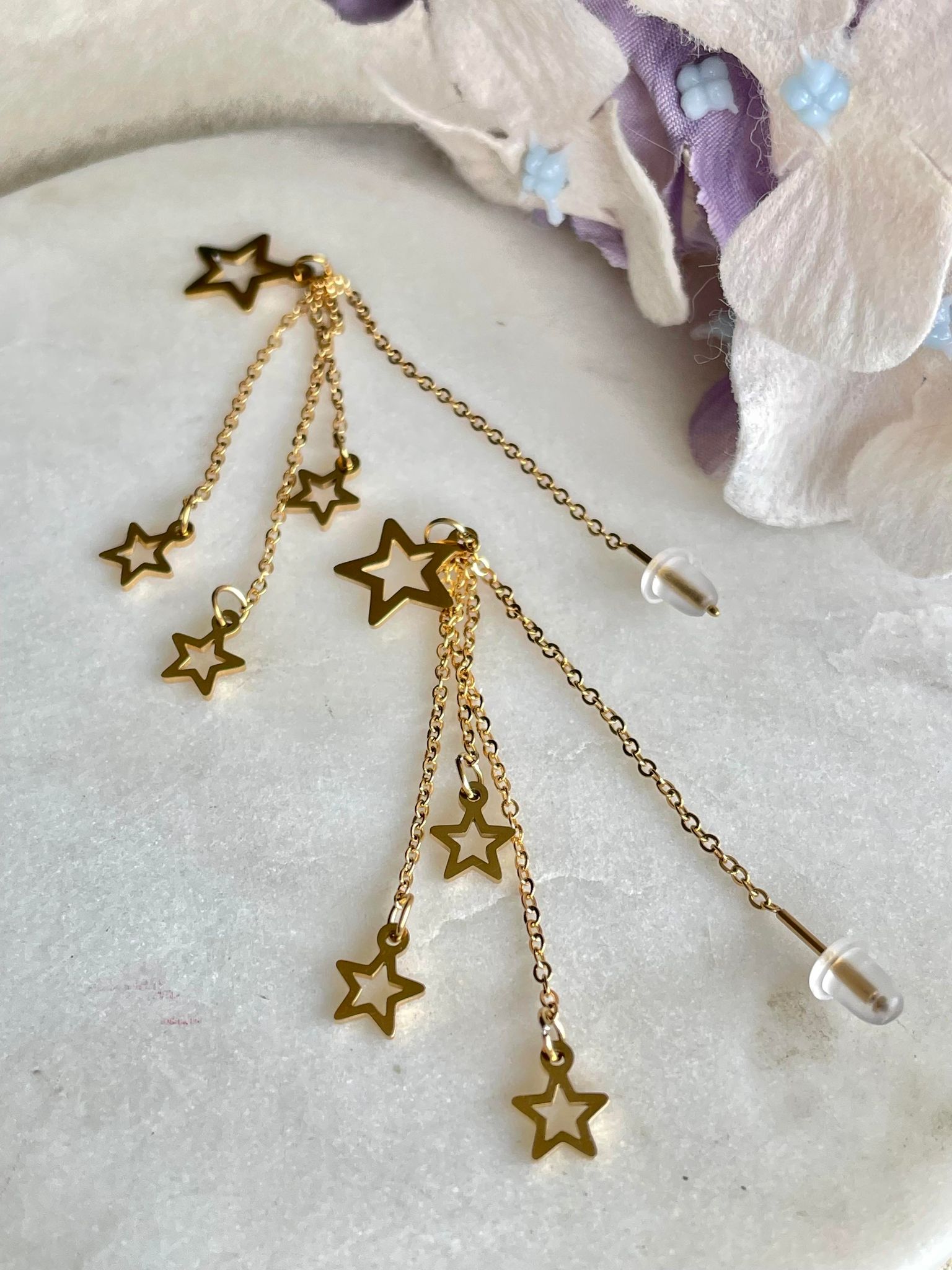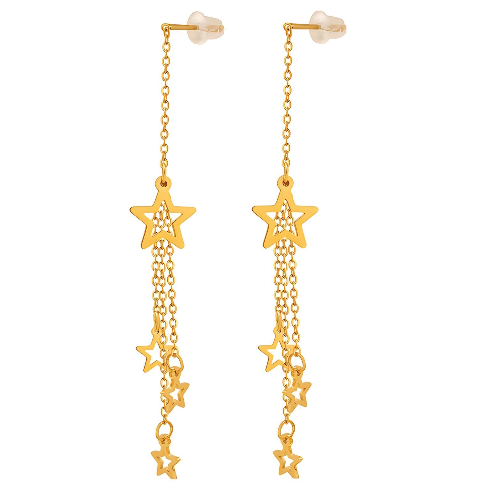 Set with 4 stars at different lengths, these thread earrings can be worn all day and night.